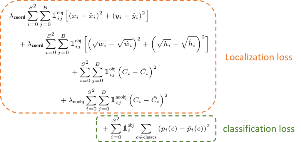 The training loss of the YOLO is composed of the localization loss and the Classification loss.